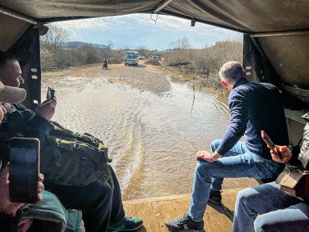 Уже несколько недель из-за разлива Днепра жители деревень Полибино, Васино и Болдино добираются до «Большой земли» на КамАЗе