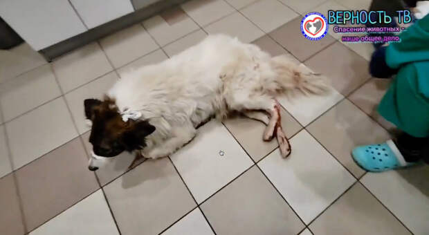 Собаку забрали волонтёры «Верности» и отвезли в первую в России бесплатную ветсанчасть, где животному сделали рентген: оказалось, что у собаки сломаны пальца на одной из задних лап.