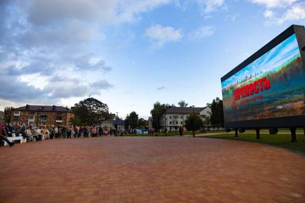 Гости открытия смогли увидеть возможности экрана: церемонию начали с просмотра военно-исторического фестиваля и показа мультфильма «Крепость: Щитом и мечом».