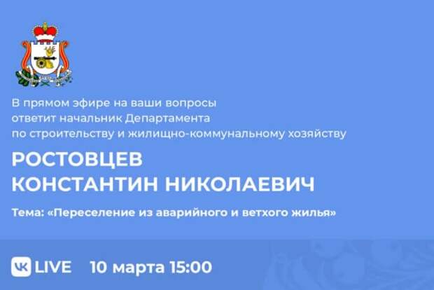 10 марта Константин Ростовцев примет участие в прямом эфире, который организуют ЦУР и администрация Смоленской области. Тема - «Переселение из аварийного и ветхого жилья».