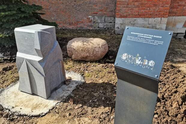 Тумбы из гранита высотой чуть меньше метра – это постаменты для будущих моделей утраченных башен крепостной стены. Под каждой миниатюрой оборудуют тактильный бронзовый барельеф для слабовидящих людей. Всего таких объектов будет семь. Их установят рядом с теми местами, где раньше возвышались башни смоленской крепости.
