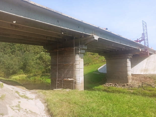 Капитальным ремонтом моста через реку Вороницу на км 4+896 автодороги «Орел-Брянск-Смоленск-граница с Республикой Белоруссия»-Старый Крупец-Епишево. Срок сдачи - 31 октября 2022 года, на участке выполнено уже более 40% от запланированных работ.