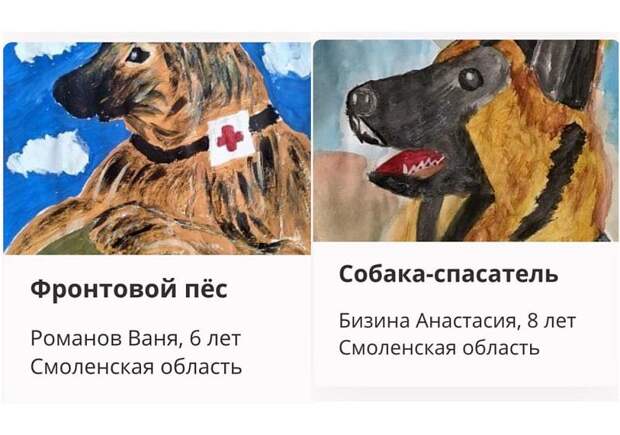 В электронную экспозицию вошли работы жителей Смоленской области. Всего на выставке представлено более 2,5 тысячи рисунков участников международного конкурса о подвигах собак.