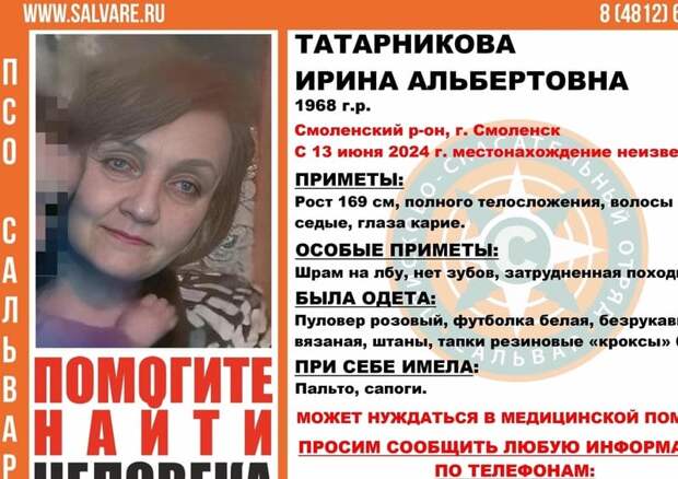 Пропала Ирина Альбертовна Татарникова, может нуждаться в медицинской помощи.