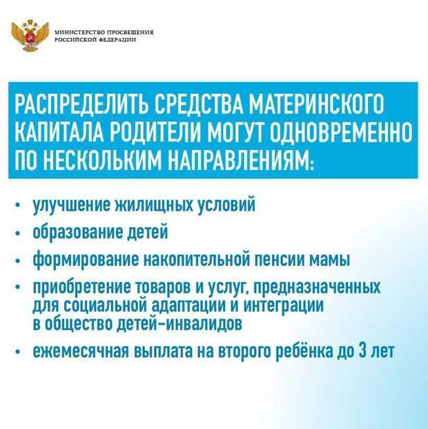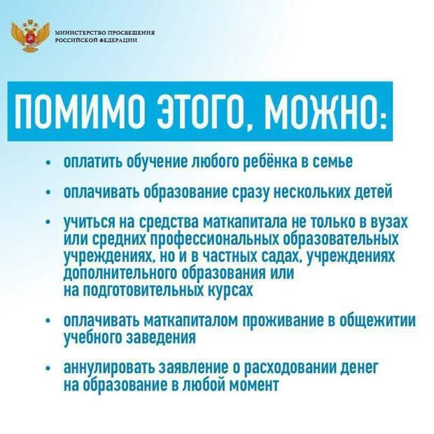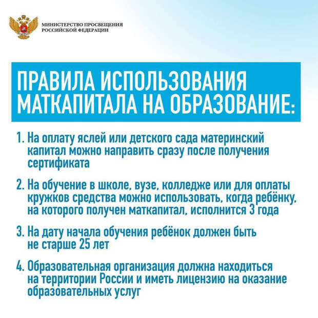 Основные правила использования маткапитала на образование: