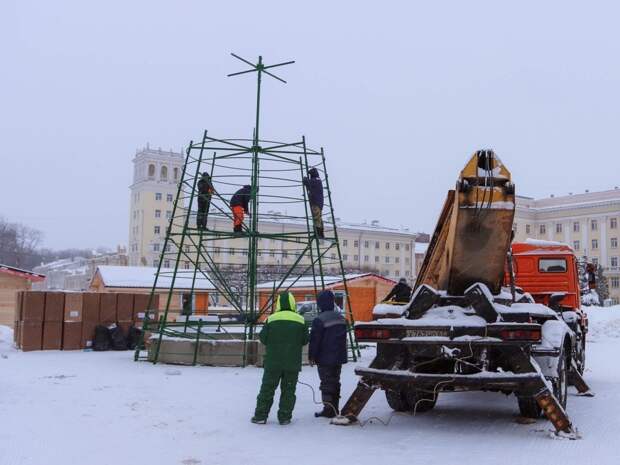 На площади Ленина стартовал монтаж главного новогоднего украшения. К слову, традиционно новогоднюю ель устанавливали у входа на сквер Клименко. Теперь ель будет стоять почти напротив здания правительства.