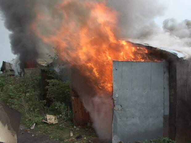 В поселке Озерный произошло возгорание гаража. Внутри него горел автомобиль.