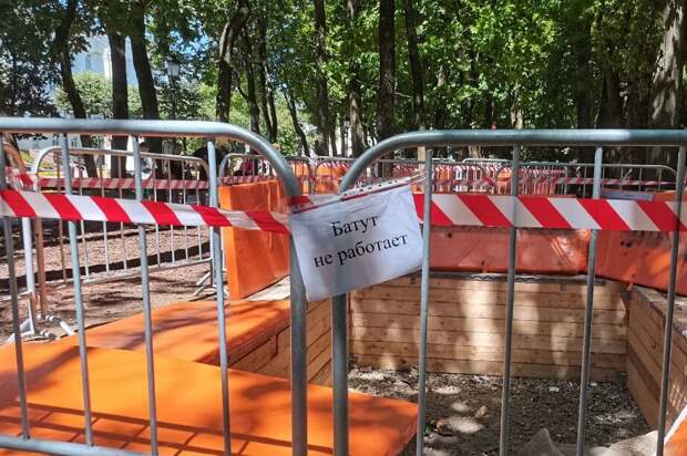 Правда, в настоящее время контролировать некого, ведь на месте батутов остались лишь углубления. Табличка рядом гласит: «Батуты не работают».