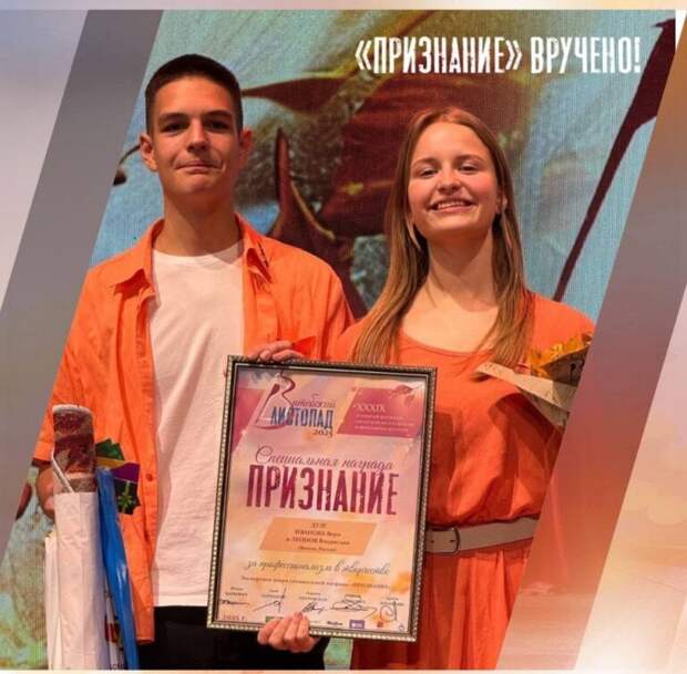 На вечернем гала-концерте фестиваля 25 октября стало известно, что обладателями премии «Признание» в этом году выбраны 16-летние Вера Иванова и Владислав Леонов из Смоленской области.