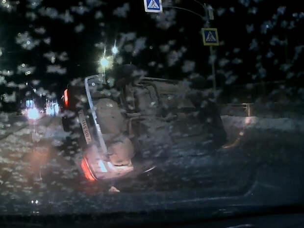 ДТП с участием иномарки, которая на ходу перевернулась на улице Фрунзе в Смоленске, запечатлели на видеорегистратор.