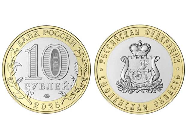 «На лицевой стороне монеты на кольце по окружности расположены надписи: в верхней части - «БАНК РОССИИ», в нижней части - «2025». Слева и справа на внешнем кольце расположены изображения ветвей лавра и дуба соответственно, элементы изображения которых переходят на диск. В центре диска расположены число «10» и надпись «РУБЛЕЙ» под ним, обозначающие номинал монеты. Внутри цифры «0» имеется защитный элемент в виде числа «10» и надписи «РУБ», наблюдаемых под разными углами зрения к плоскости монеты. В нижней части диска расположен товарный знак Московского монетного двора. На оборотной стороне монеты расположено рельефное изображение герба Смоленской области; на кольце по окружности имеются рельефные надписи, разделенные точками: в верхней части - «РОССИЙСКАЯ ФЕДЕРАЦИЯ», в нижней части - «СМОЛЕНСКАЯ ОБЛАСТЬ», - сообщает пресс-служба Банка России.
