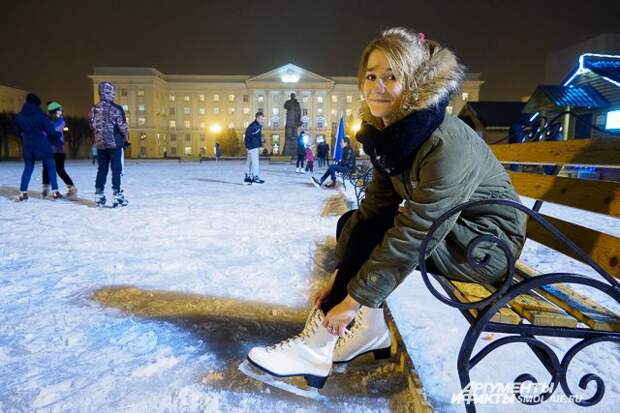 На главной площади города уже появились бревенчатые домики, предназначенные для аренды коньков, переодевания и организации горячего питания. Сейчас их украшают гирляндами. Уже установлена хоккейная коробка, большой каток для массовых катаний готовят к заливке.