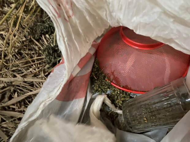 Оперуполномоченные в присутствии понятых в принадлежащей подозреваемому хозяйственной постройке обнаружили и изъяли полимерный пакет с массой растительного происхождения и высушенные части растения, по внешним признакам схожие с наркосодержащими.
