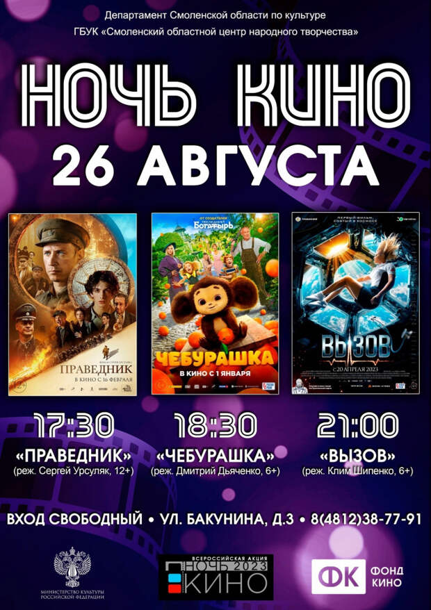 В субботу, 26 августа, в Смоленске состоится Ночь кино.