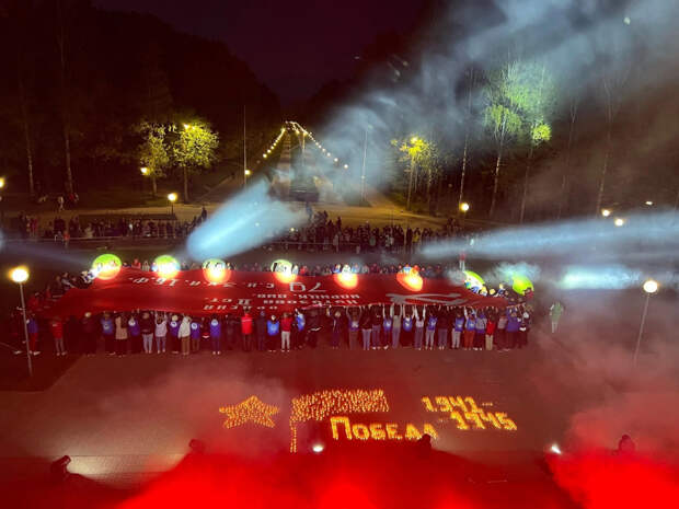 Также в Реадовском парке члены волонтёрских организаций выложили свечами слово «Победа».
